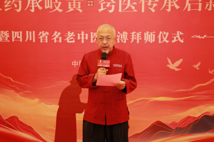 中医传承离不开行业同仁的支持与见证,本次仪式有幸邀请到成都宝芝堂中医馆党支部书记刘言正主任作为本次拜师仪式的见证人。见证这一庄严盛事,并对师徒二人表示祝贺。刘主任表示,本次拜师仪式不仅是落实中医药传承发展指示精神的具体行动,更是让中医文化在新时代绽放光彩的重要举措。
